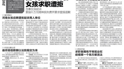 女孩求职因"河南人"被拒 涉事企业被判赔偿1万元