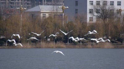 河南柘城:炎帝故里迎新客,天鹅畅游北容湖