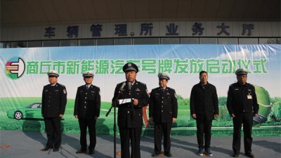河南商丘市举行新能源汽车专用号牌发放启动仪式