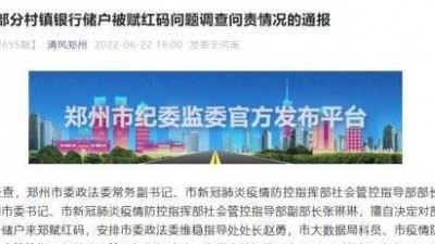 郑州通报部分村镇银行储户被赋红码问题调查问责情况