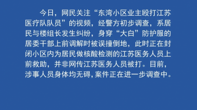 上海小区业主殴打江苏医疗队队员?警方通报来了!
