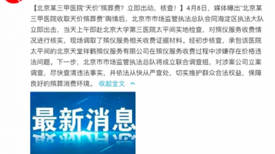 北京某三甲医院收取“天价殡葬费”?民政部回应