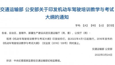 两部门联合发布新版机动车驾驶培训教学与考试大纲