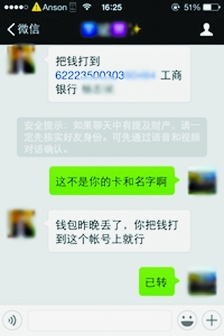 今年9月,南京市公安局秦淮分局朝天宫派出所接到一起报警,市民方小姐称有人在微信上冒充自己。方小姐反映,事发前她接到几位朋友的电话,核实方小姐是否有在微信上找他们借钱。方小姐觉得不对劲,询问了解到,原来当天早上,她的不少微信好友接到“方小姐”的好友申请。对方头像、昵称、个人资料和方小姐完全相同。在发来的申请中,对方备注“误删好友重新添加,请通过”。几名好友没有多想,就加了她。过了半天,“方小姐”发来消息,说自己有急事,想借两千元周转几天。所幸朋友汇款前向她打电话求证,暂时没有人借钱给那位“方小姐”。报警人立即发布一条朋友圈,叮嘱其他人不要上当。