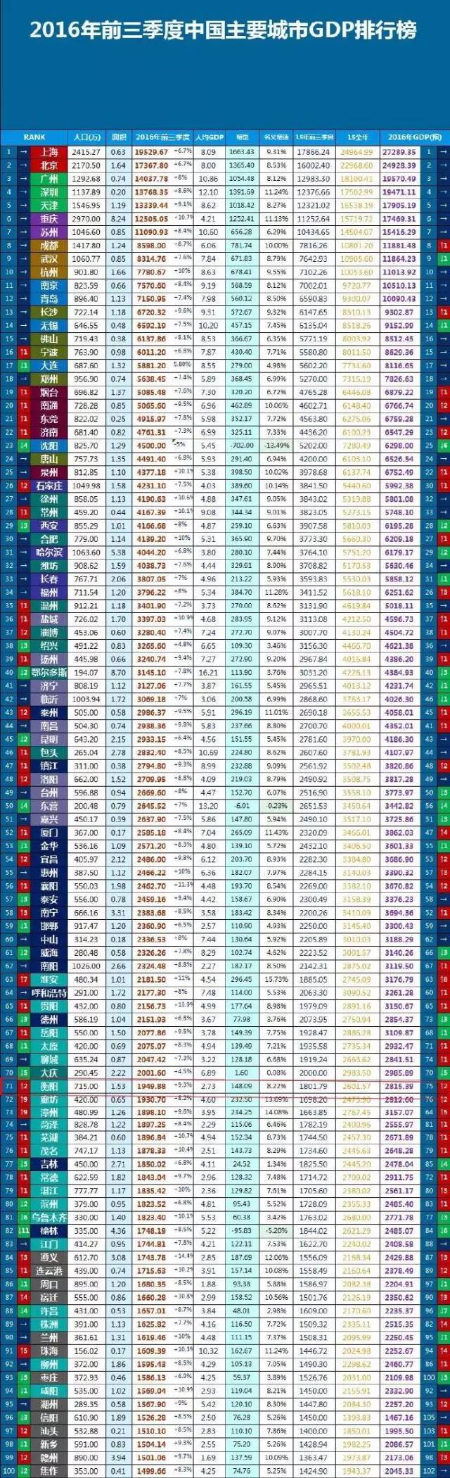 近日,国家统计局公布了2016年前三季度中国主要城市GDP排行榜,先看看湖南在全国100个主要城市中有多少