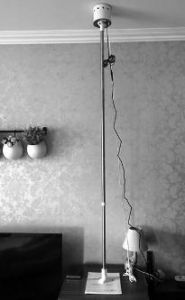 赵春丽介绍,当时看到的是地下有个托盘,中间通过一根伸缩管支撑,在天花板上有个主机。开动电源后,有震动的感觉,四楼住户称自己花了400多元从网上购买的。