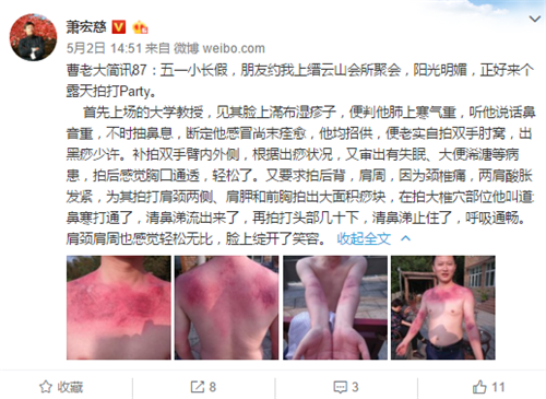 拍胳膊(图片来源于萧宏慈微博)