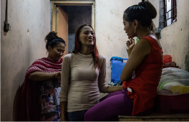 据美国《华盛顿邮报》网站报道,杰玛19岁时第一次来到菲律宾的安赫莱斯市,开始在当地的红灯区工作,那时,她的姐妹们给了她一把小刀和一瓶防狼喷雾。杰玛说:“如果我们没有彼此的话,就活不到现在。”大姐乔乔告诉她,一定要把男人带她去的酒店名称和房号用短信发给她。从左至右分别是乔安、乔乔和杰玛,她们正在为夜里在菲律宾安赫莱斯市酒吧里的工作做准备。编译/武林